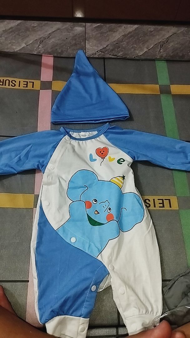 Chất liệu:vải cotton mềm mại, dày dặn, co dãn tốt Màu sắc:màu bên ngoài nhìn cưng lắm. Mũ trông cũng đáng yêu nữa